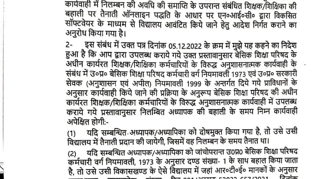 निलंबन /बहाली में विद्यालय आवंटन के संबंध में। – UpdateMarts| PRIMARY KA MASTER | SHIKSHAMITRA | Basic Shiksha News