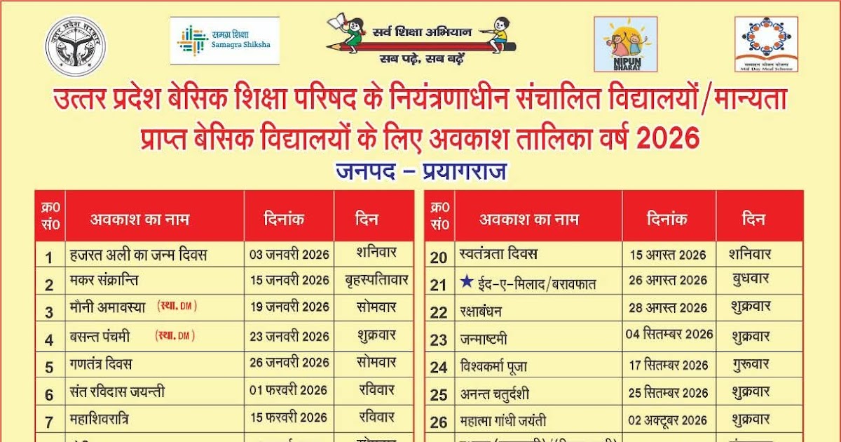 अवकाश तालिका -2026 : जनपद -प्रयागराज – UpdateMarts| PRIMARY KA MASTER | SHIKSHAMITRA | Basic Shiksha News