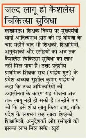 “`4 महीने के बाद भी कैशलेस सुविधा शिक्षकों को नहीं मिल पाई….. उम्मीद है कि जल्द ही कैशलेश चिकित्सा ...