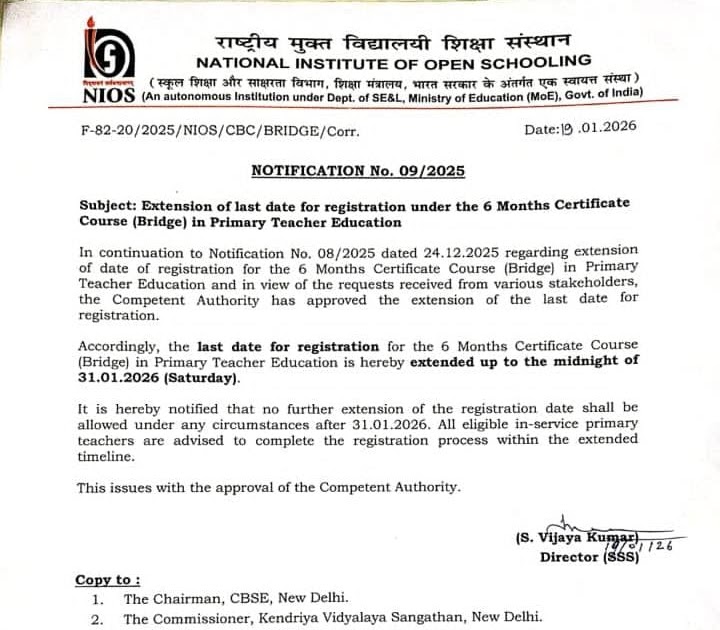 ब्रिज कोर्स में रजिस्ट्रेशन करने की समय सीमा 31 जनवरी 2026 तक बढ़ा दी गई है… – UpdateMarts| PRIMARY KA MASTER | SHIKSHAMITRA | Basic Shiksha News