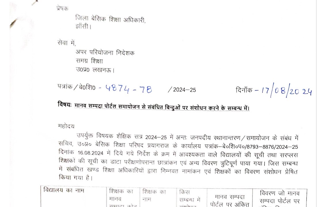 मानव संपदा पोर्टल पर समायोजन से संबंधित बिन्दुओ पर संशोधन के संबंध में मानव संपदा पोर्टल पर समायोजन से संबंधित ...