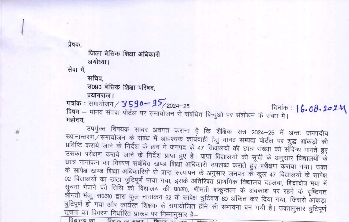 प्रयागराज, परिषदीय प्राथमिक स्कूलों में कार्यरत शिक्षकों के जिले के अंदर समायोजन को लेकर शहरी और ग्रामीण क्षेत्र का झगड़े ...