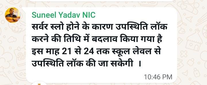 *मानव सम्पदा अपडेट* अटेनडेन्स लॉक हेतु सर्वर की समस्या के दृष्टिगत 1 दिवस की अवधि (24 तक) सिर्फ माह अगस्त ...