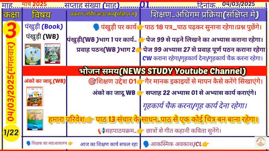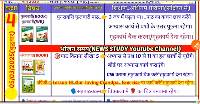Teacher diary: दिनांक 04 मार्च , 2025 कक्षा- 01, 02, 03, 04, 05 की भरी हुई शिक्षक डायरी , देखें ...