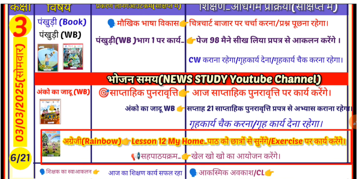 Teacher diary: दिनांक 03 मार्च , 2025 कक्षा- 01, 02, 03, 04, 05 की भरी हुई शिक्षक डायरी , देखें ...